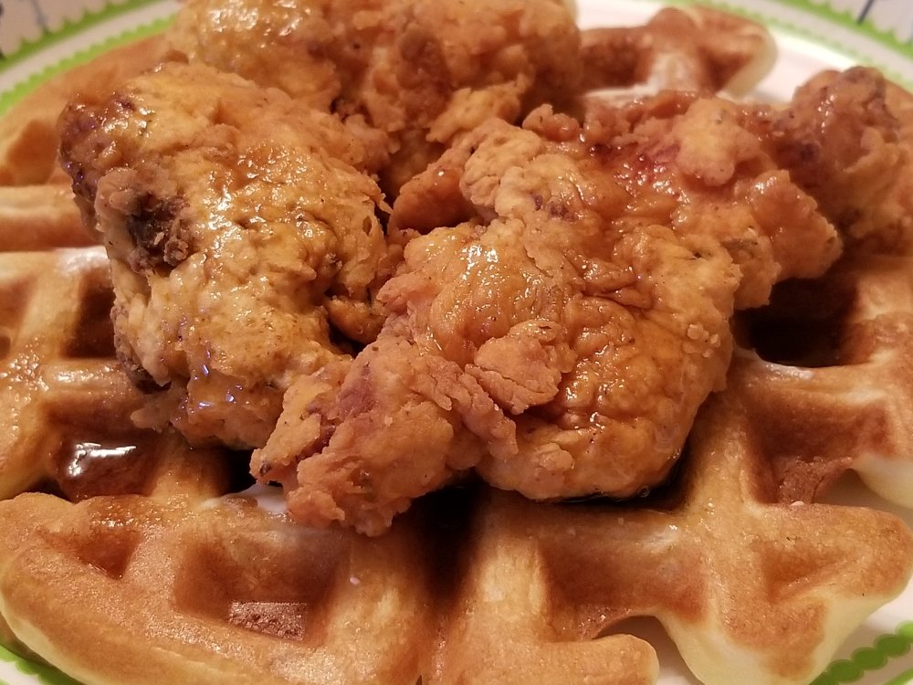 13. Place chicken in a warm oven while making the waffles.