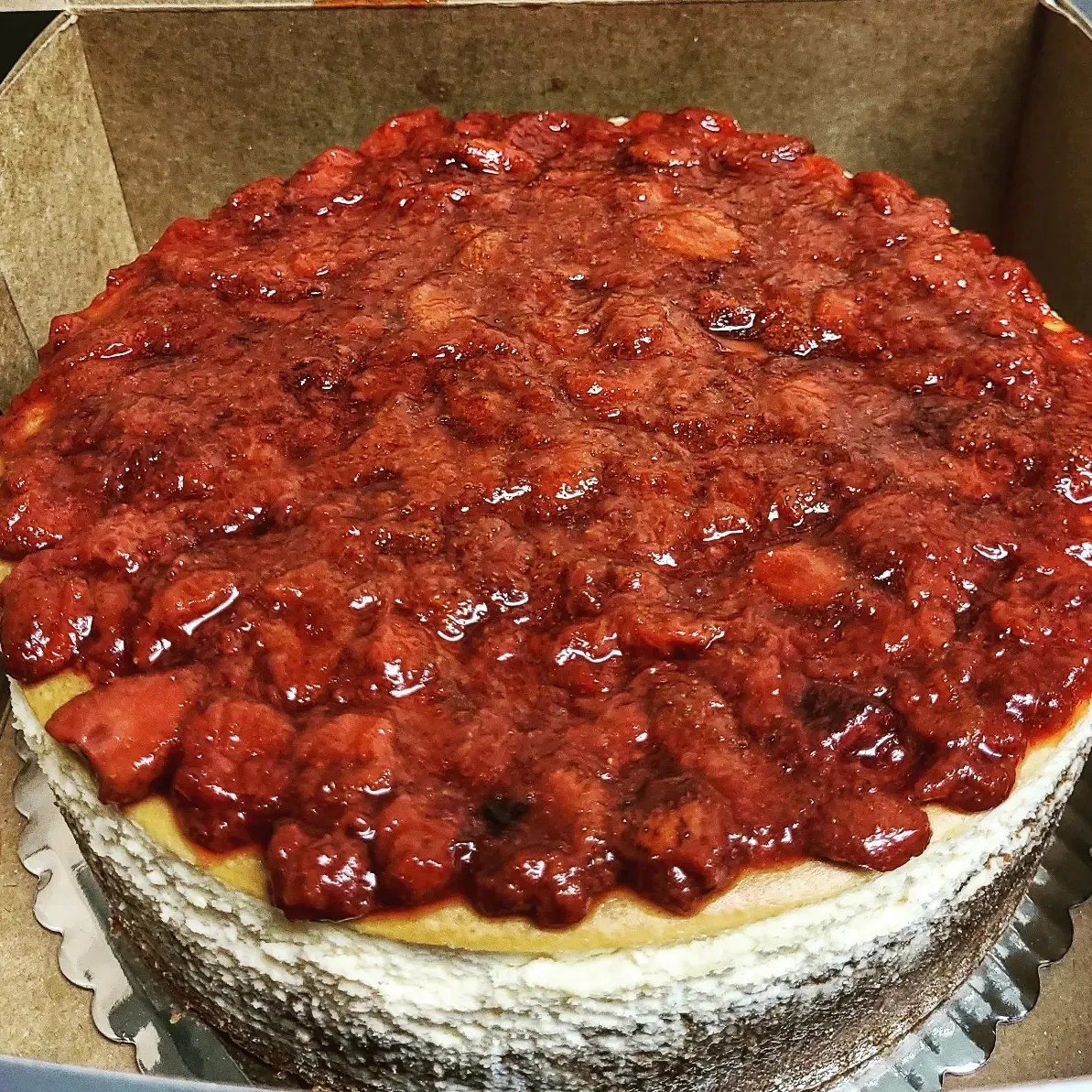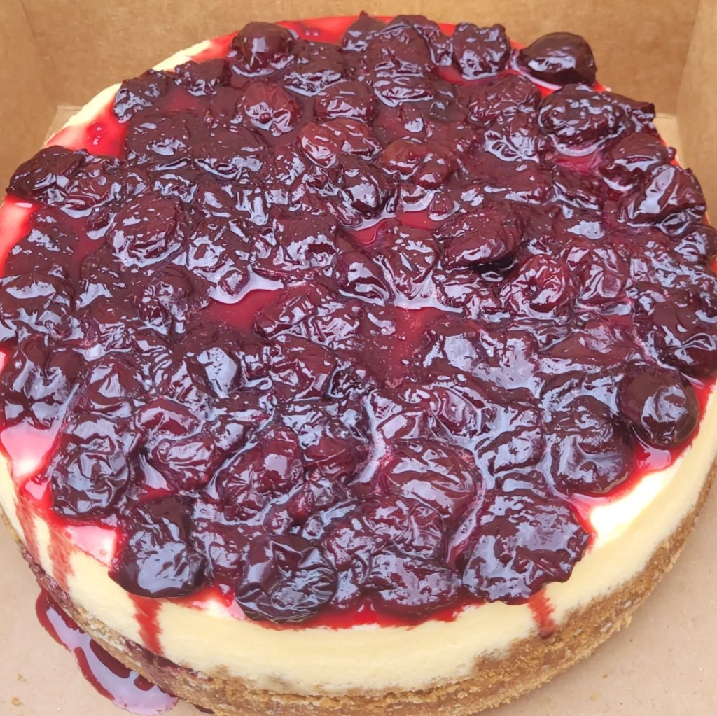 Berry Chantilly (seasonal) – three 8″ layers of cake filled with mascarpone Chantilly frosting and fresh berries.