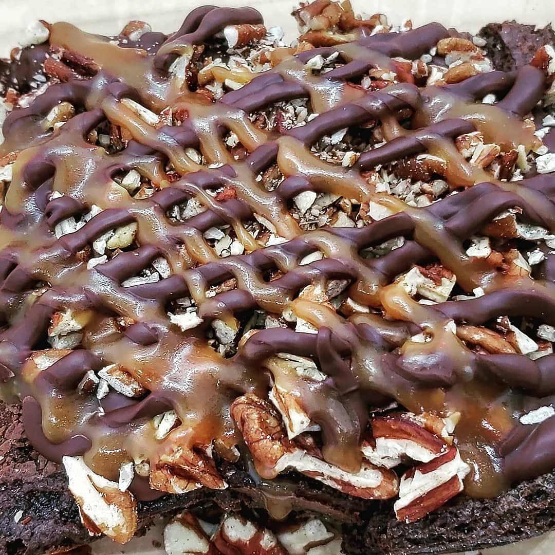 Turtle – fudge brownie topped with scratch made sea salt caramel and chocolate ganache drizzle and toasted pecans – 7.00/each