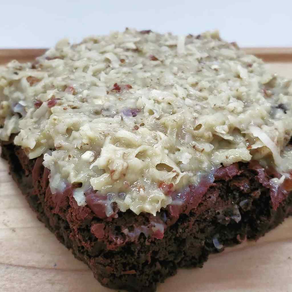 German Chocolate – fudge brownie topped with made from scratch coconut and pecan topping – 7.00/each