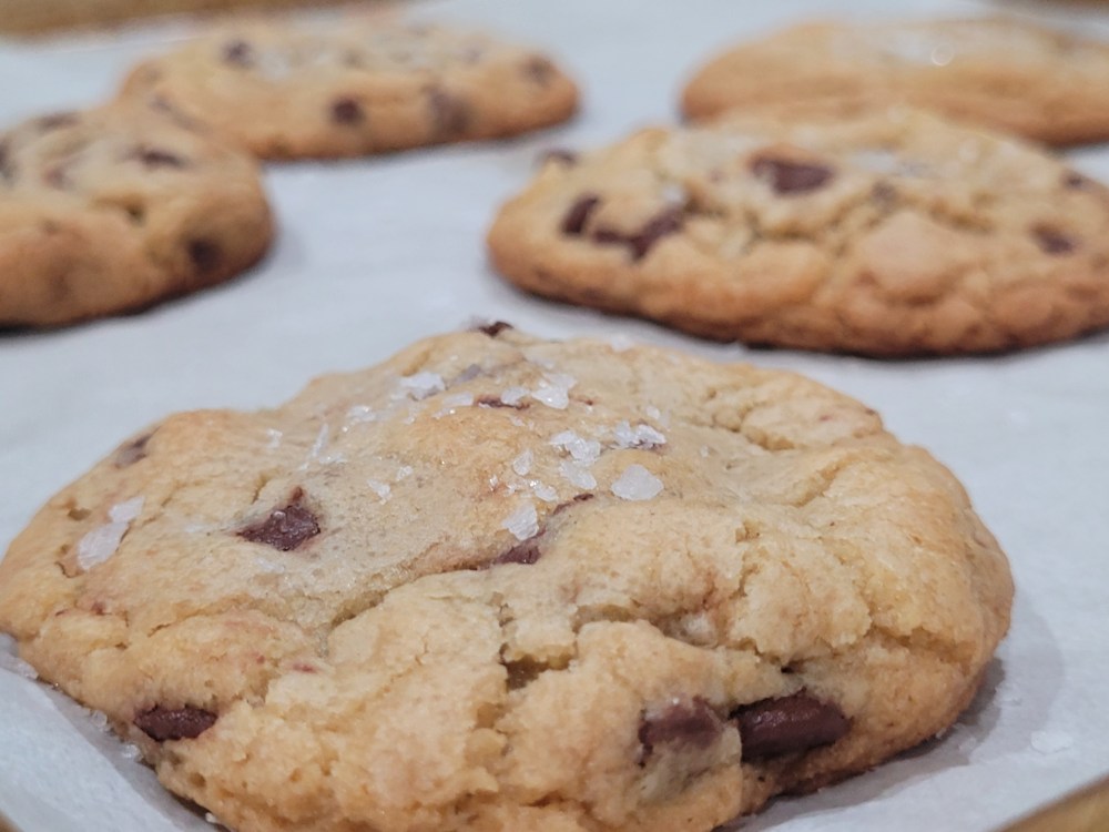 Chewy and delicious chocolate chip cookies with browner butter and flakey sea salt.