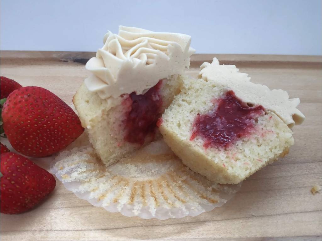 Peanut Butter and Jelly Cupcakes – my vanilla cupcake filled with my handmade strawberry filling, topped with peanut butter buttercream.