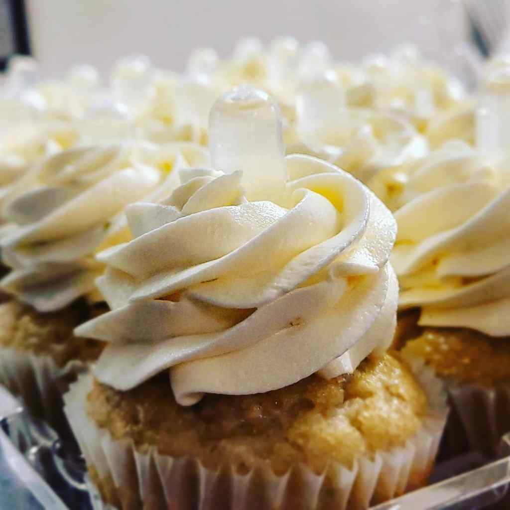 Cannoli Cupcakes – my vanilla cupcake topped with my handmade cannoli cream, covered in scratch made chocolate shell with or without pistachios